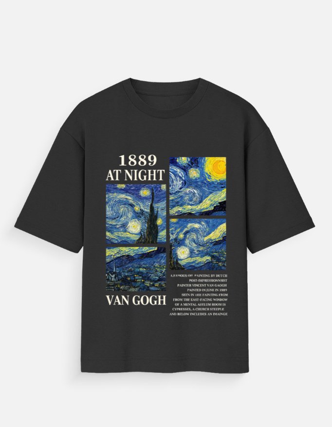 Van Gogh 1889 – Starry Night Collage || Premium Streetwear Oversized T-shirt ||